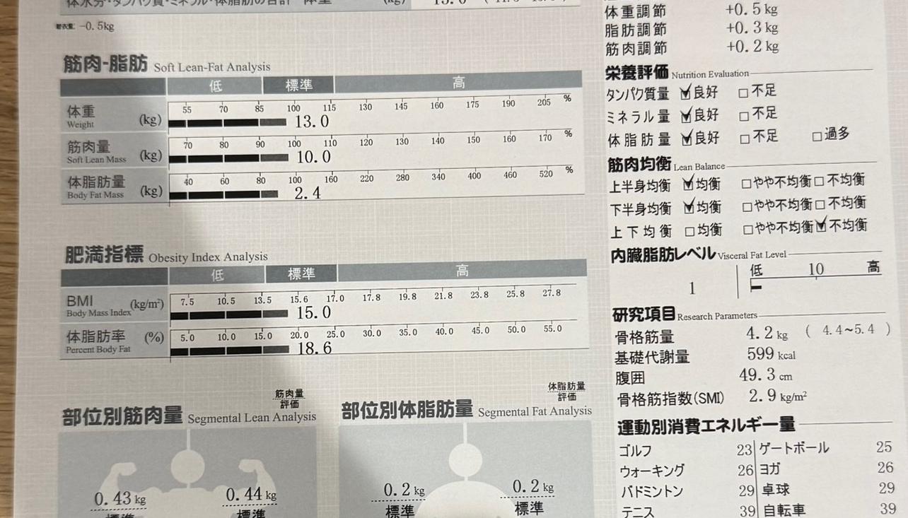 こどものインボディ測定値🤔